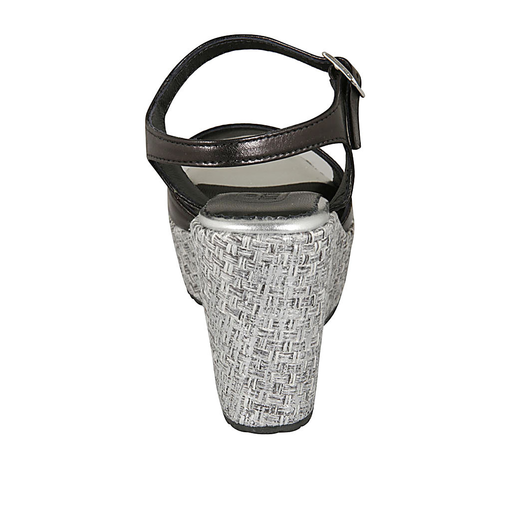 Sandalia para mujer con cinturon y plataforma en piel negra y tejido gris plateado cuña 9 - Tallas disponibles:  42, 43