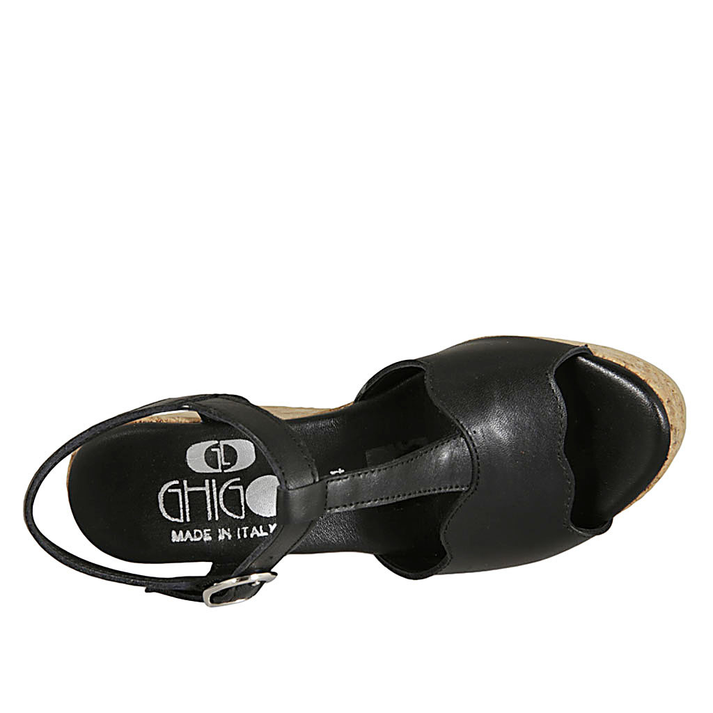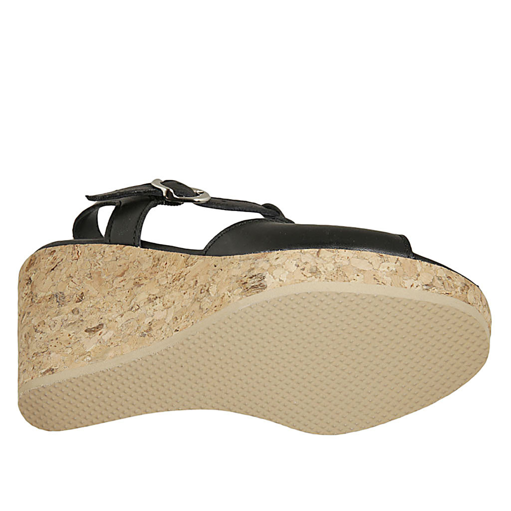 Sandalia para mujer en piel negra con cinturon, plataforma y cuña 9 - Tallas disponibles:  42, 43, 44
