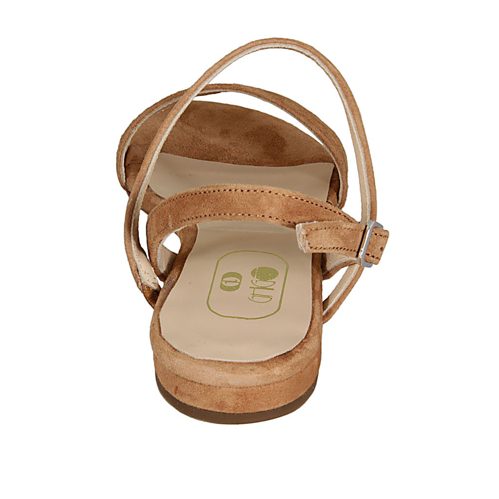 Sandalia para mujer con cinturon en gamuza cognac tacon 2 - Tallas disponibles:  32