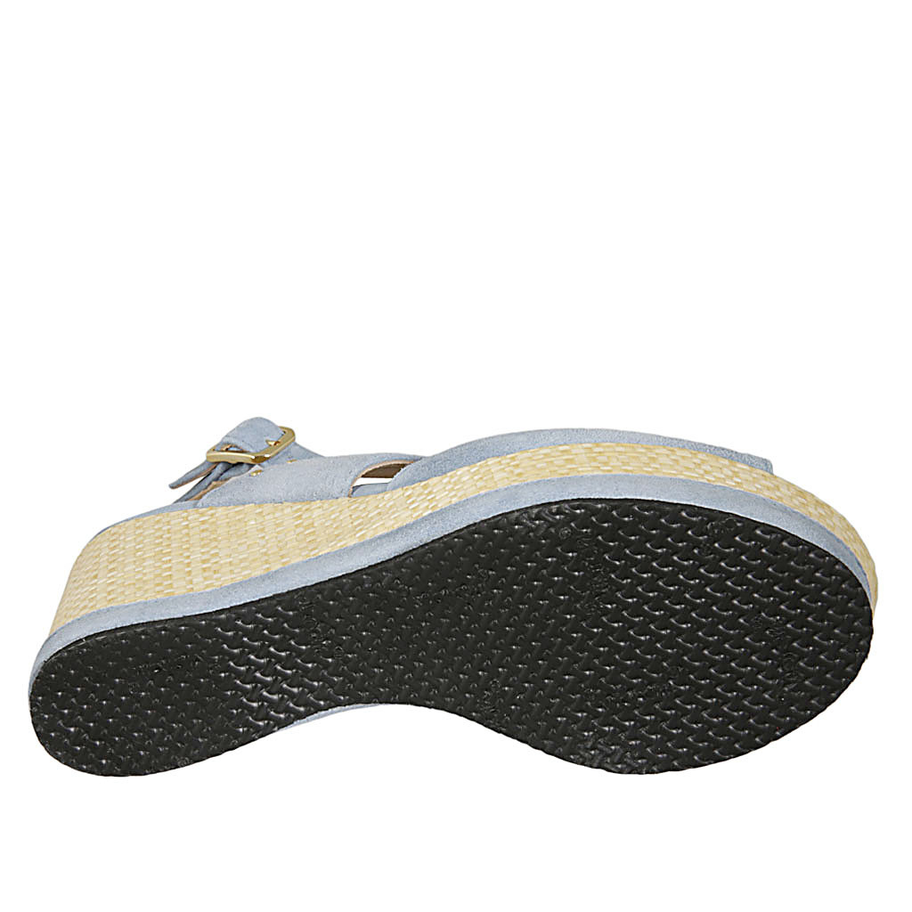 Sandalia para mujer en gamuza azul claro con tachuelas y cuña 7 - Tallas disponibles:  43