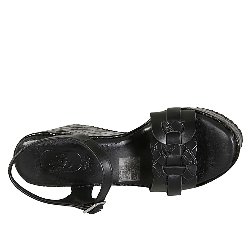 Sandalia para mujer en piel negra con cinturon, plataforma y cuña imprimida 9 - Tallas disponibles:  42