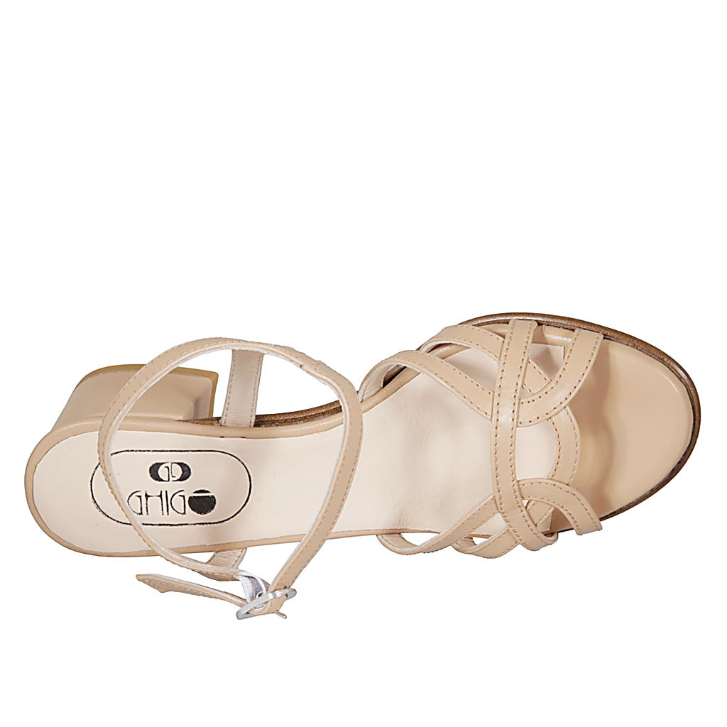 Sandalia con cinturon para mujer en piel rosa arena tacon 4 - Tallas disponibles:  45