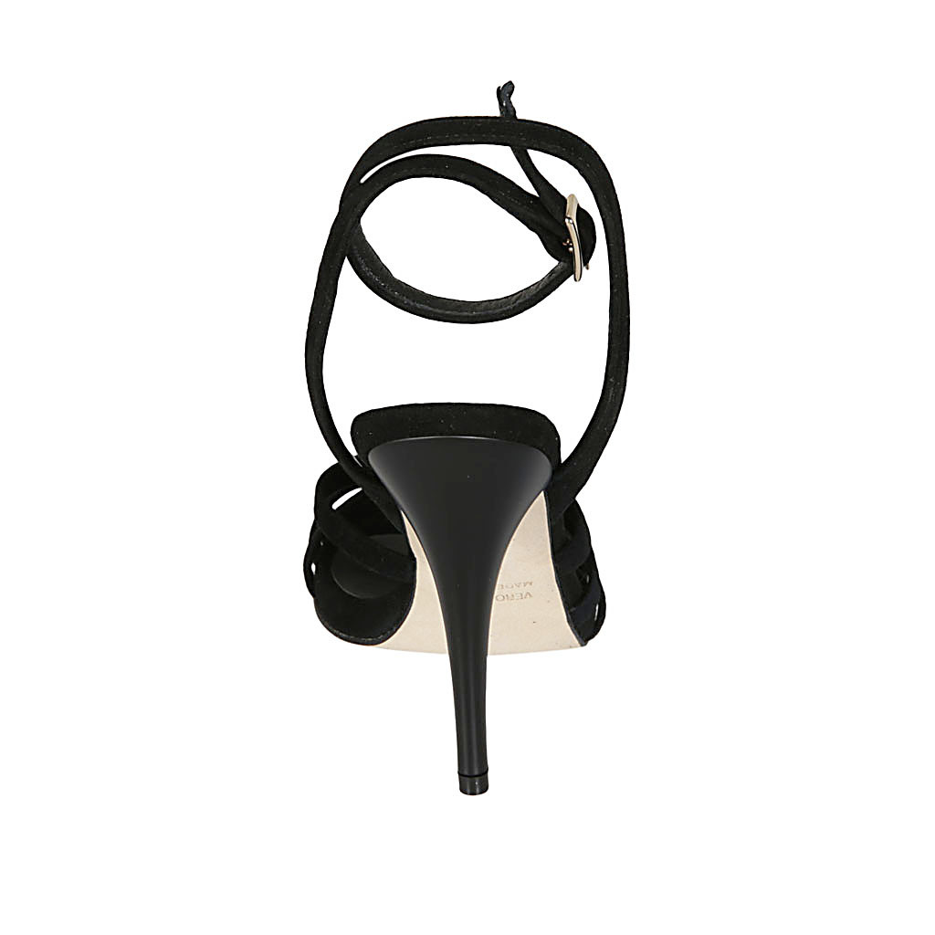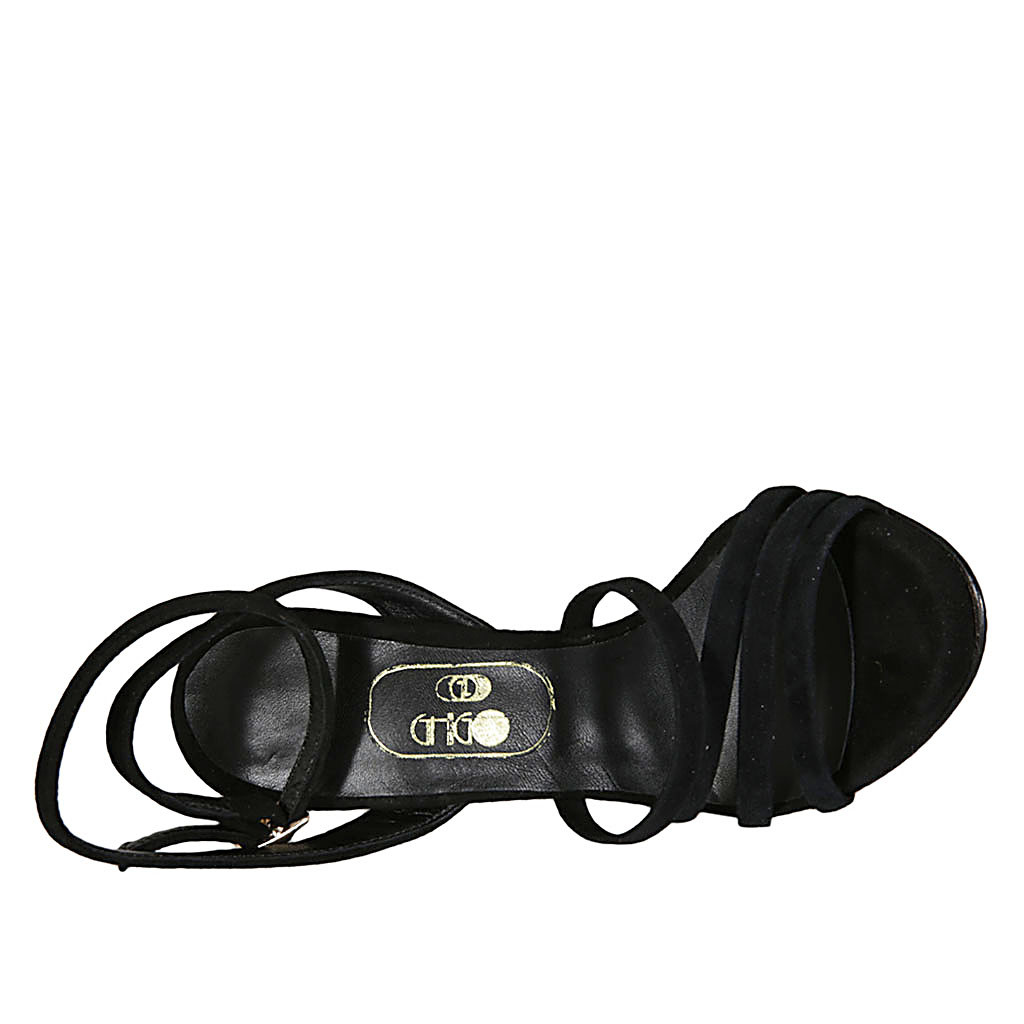 Sandalia para mujer con cinturon al tobillo en gamuza negra tacon 11 - Tallas disponibles:  42
