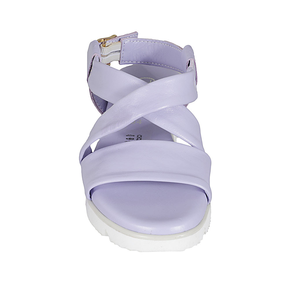 Sandalia para mujer en piel lila cuña 3 - Tallas disponibles:  32, 34