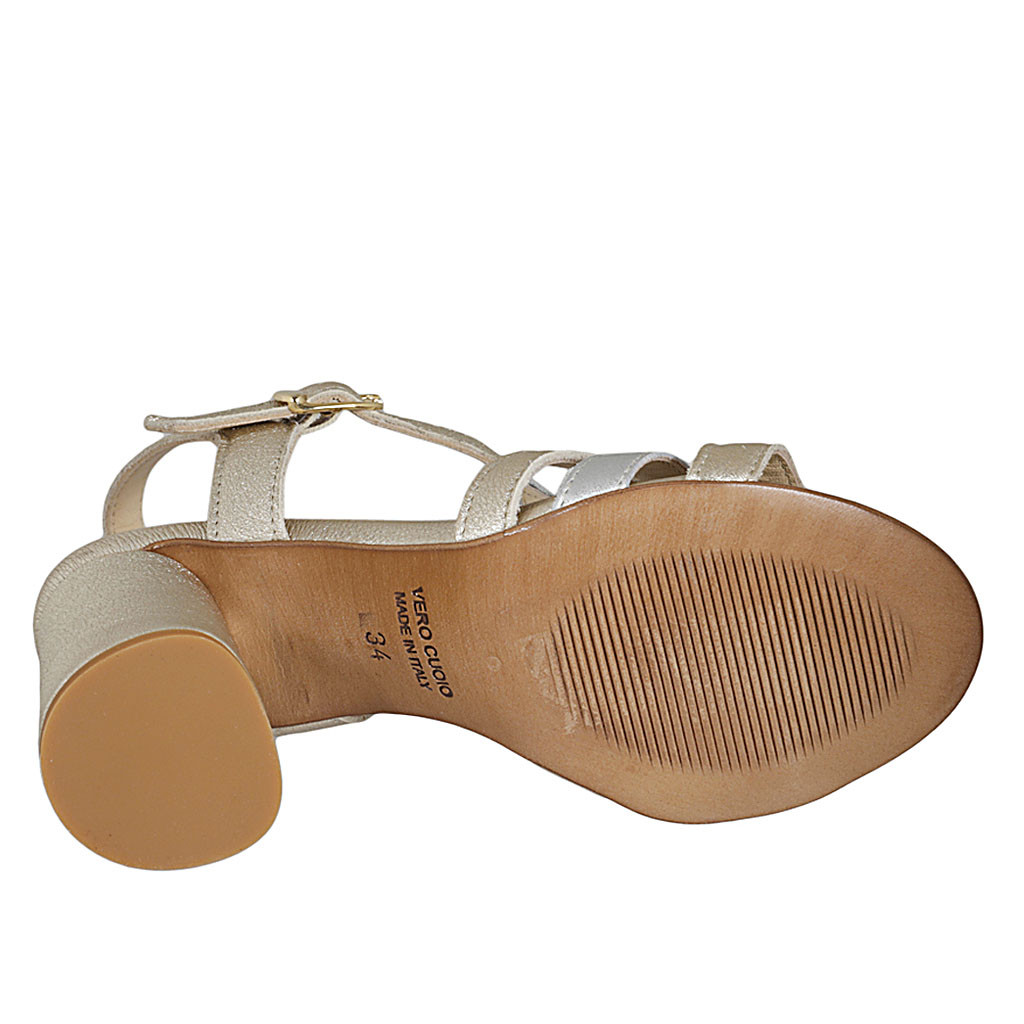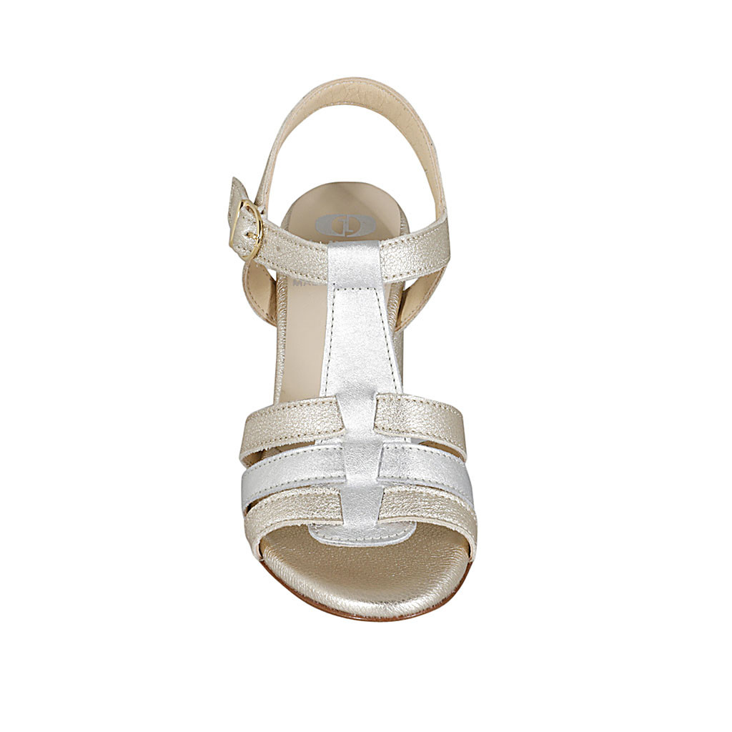 Sandalia para mujer en piel laminada platino y plateada con cinturon tacon 7 - Tallas disponibles:  32, 42, 43