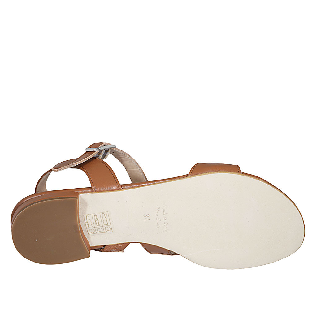 Sandalia para mujer en piel cognac con elastico tacon 1 - Tallas disponibles:  32