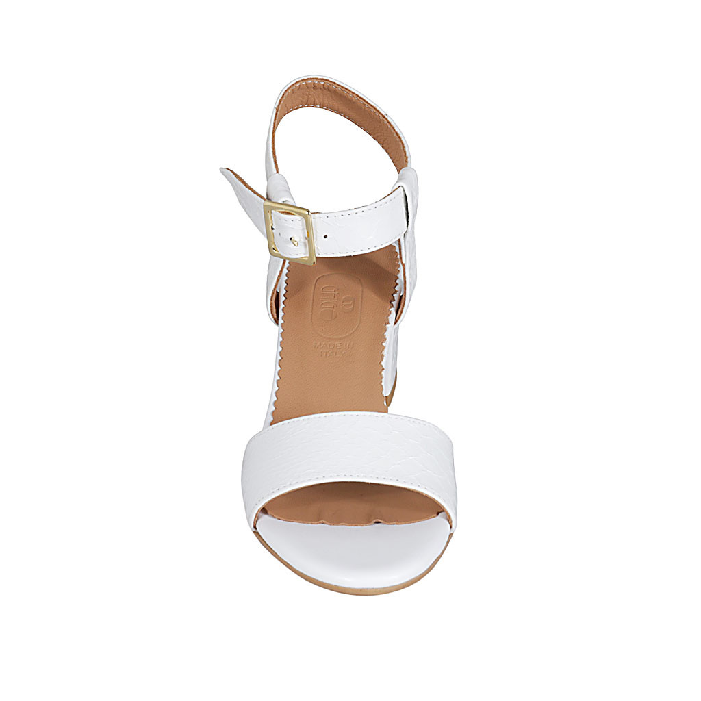 Sandalia con cinturon al tobillo para mujer en piel estampada blanca tacon 5 - Tallas disponibles:  42, 44
