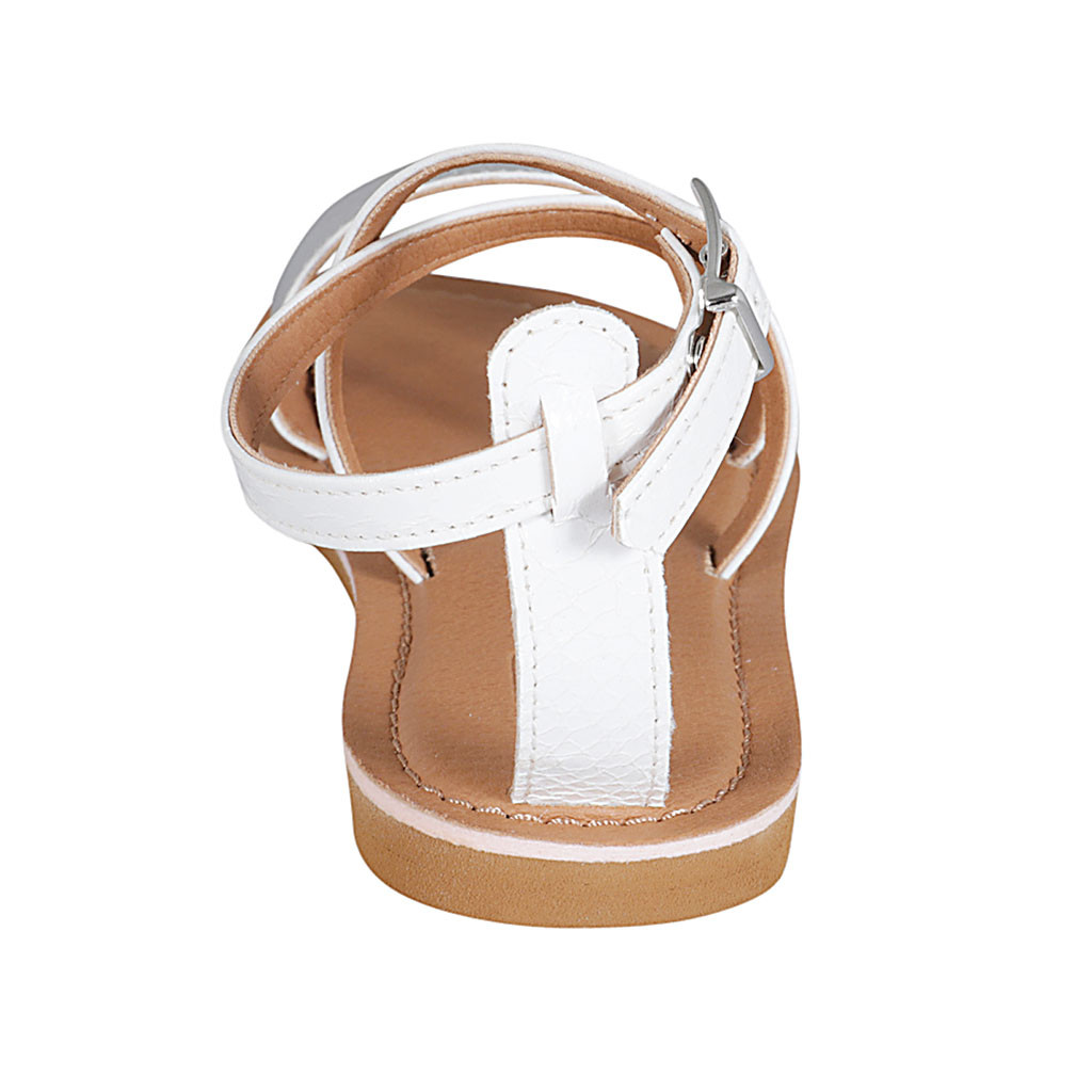 Sandalia para mujer con correa cruzada en piel blanca y laminada plateada tacon 1 - Tallas disponibles:  32