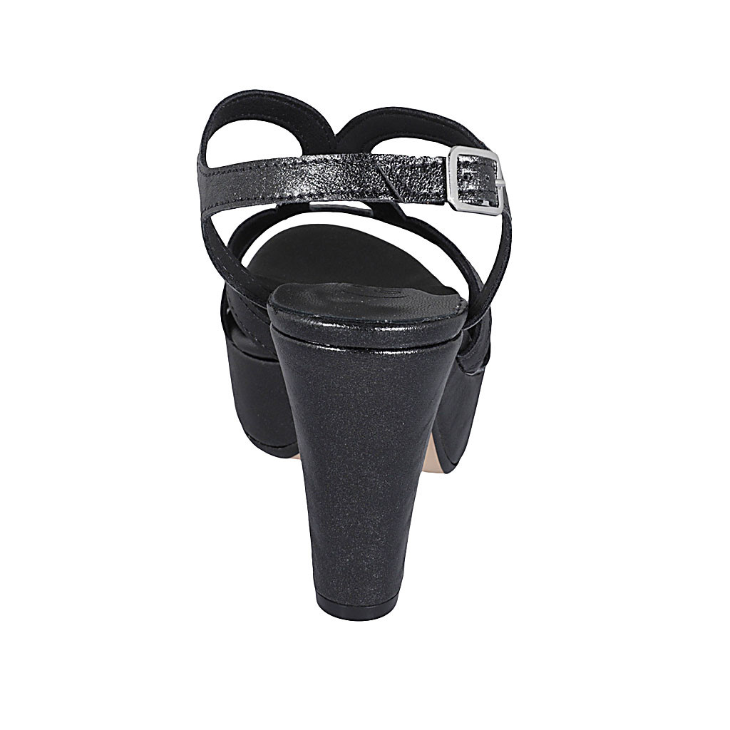 Sandalia para mujer en piel laminada negra con plataforma y tacon 9