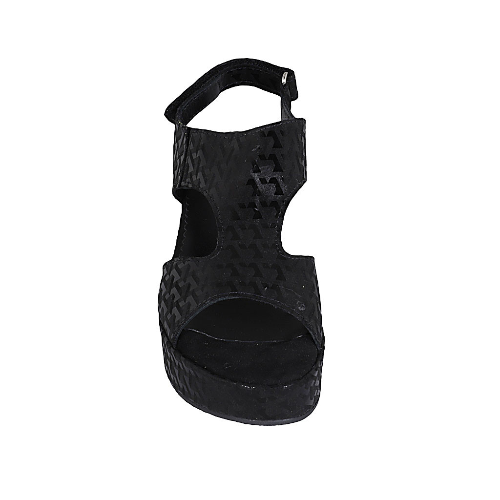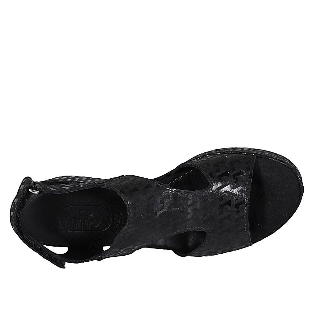 Sandalia con cinturon para mujer en piel negra y laminada plateada tacon 8