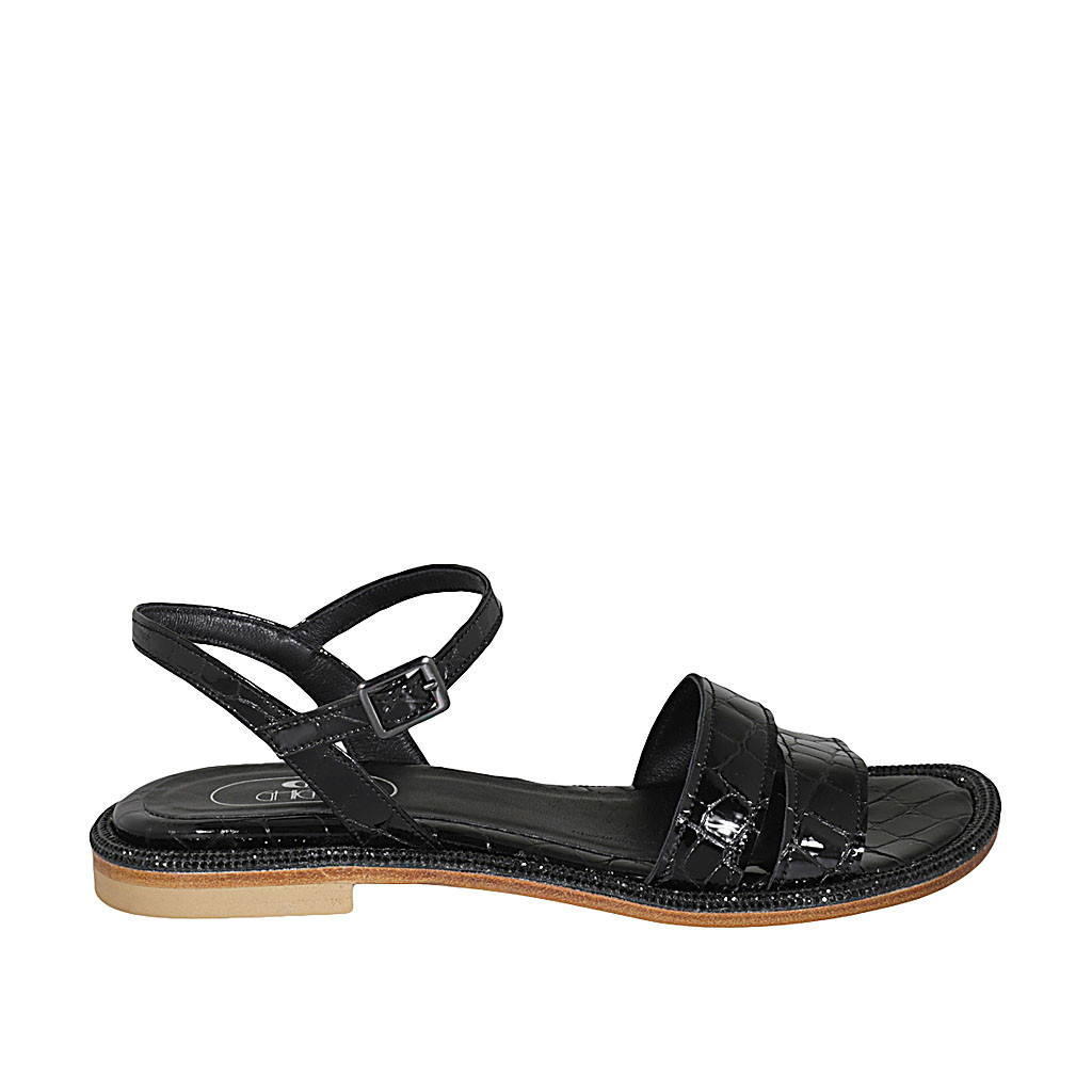 Sandalia para mujer en charol estampado negro con cinturon tacon 1 - Tallas disponibles:  33, 42, 44