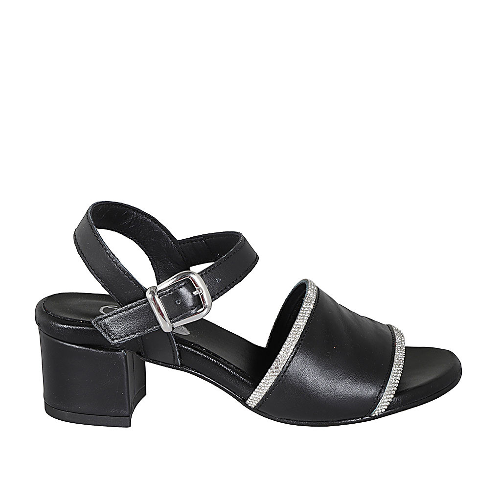 Sandalia con cinturon y estrás para mujer en piel negra tacon 5 - Tallas disponibles:  44, 45