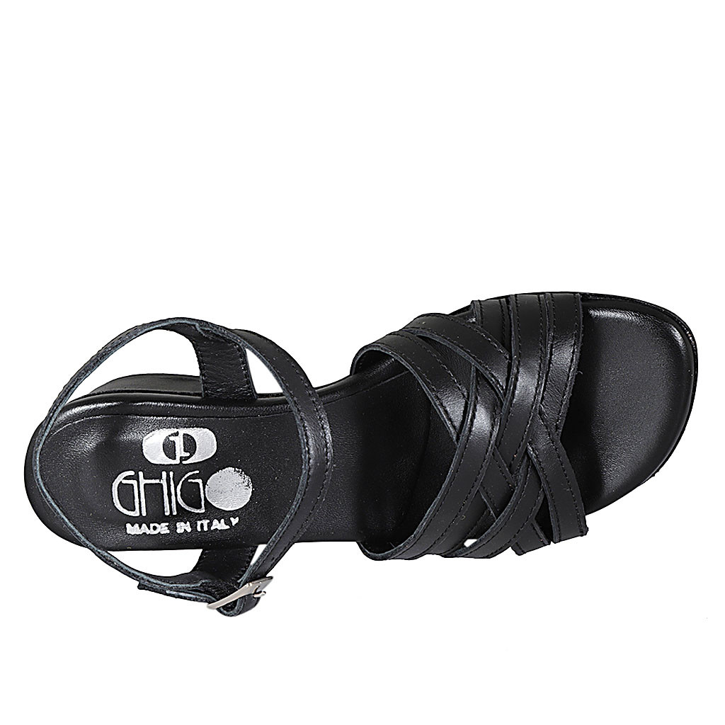 Sandalia para mujer con correas cruzadas en piel negra tacon 4 - Tallas disponibles:  43