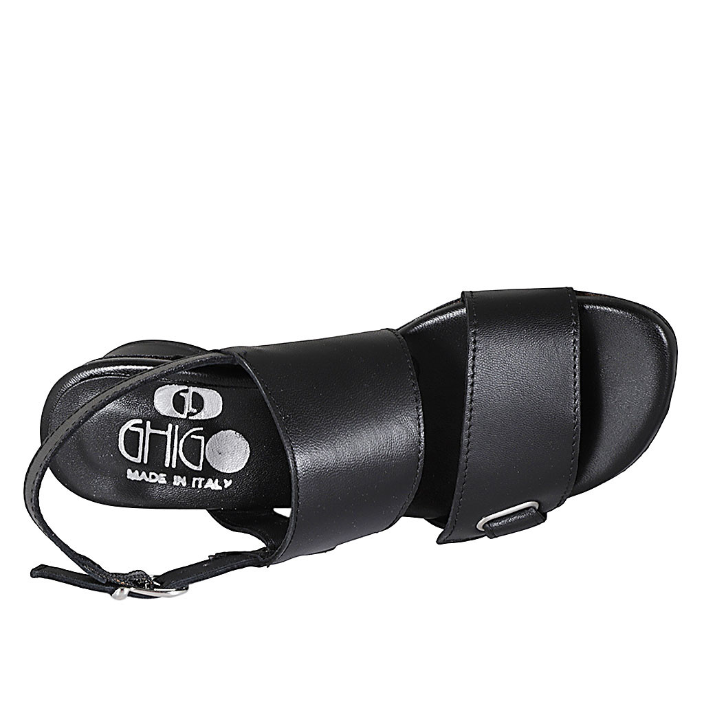 Sandalia para mujer en gamuza negra con cinturon, tachuelas y tacon 1