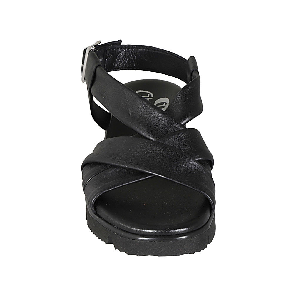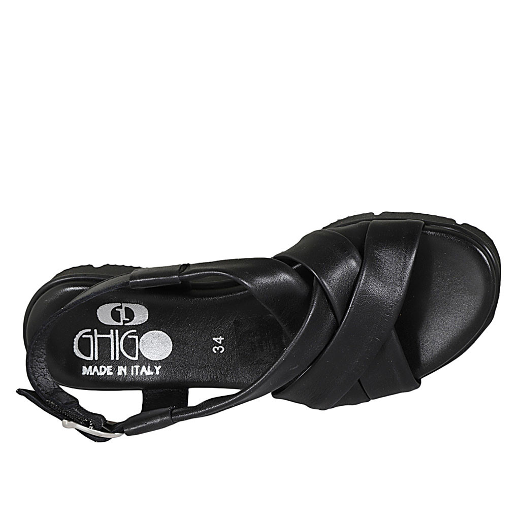 Sandalia para mujer con bandas cruzadas en piel negra cuña 3 - Tallas disponibles:  32