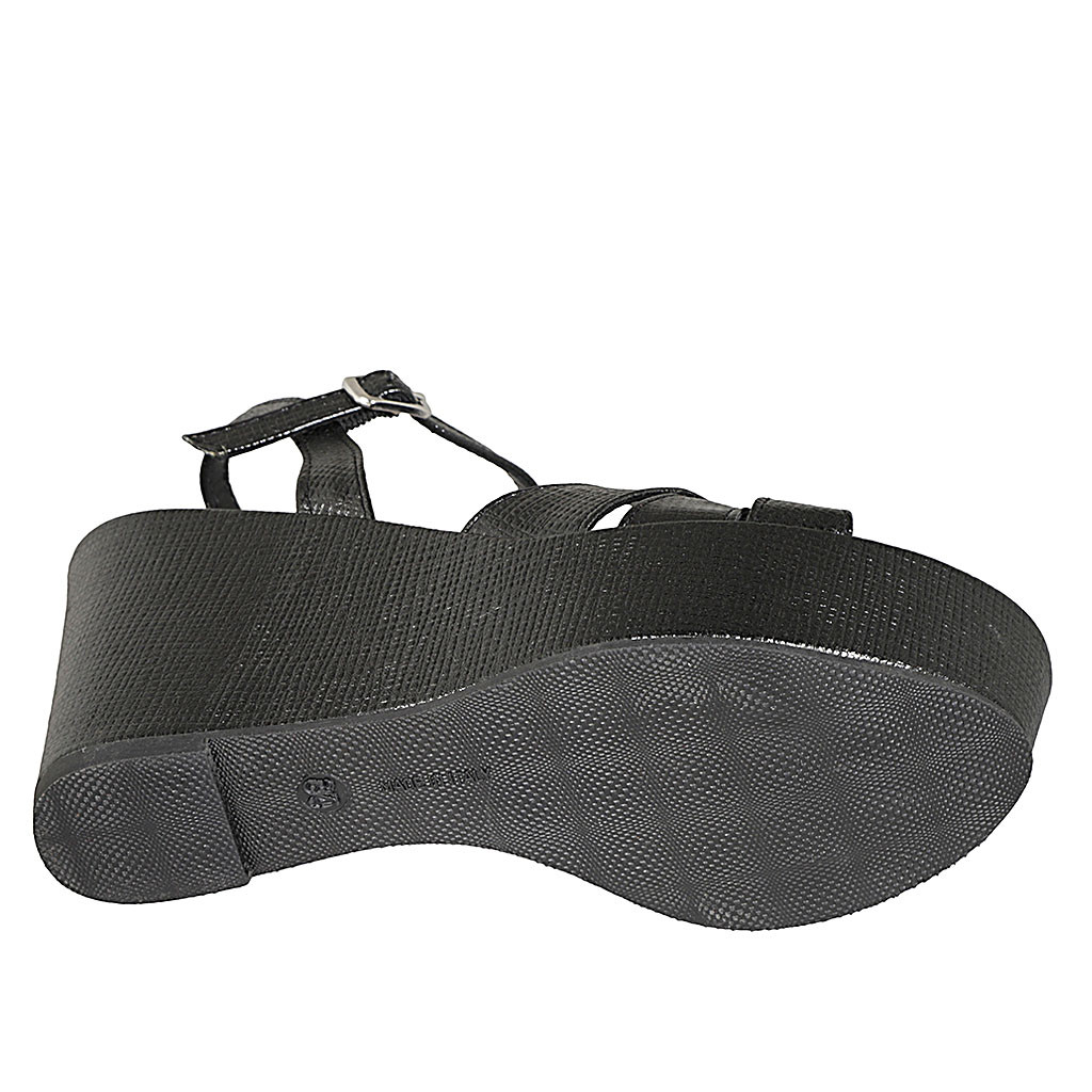 Sandalia para mujer en piel imprimida negra con cinturon, plataforma y cuña 9 - Tallas disponibles:  42, 44