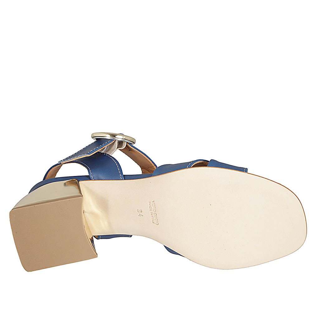 Sandalia para mujer en piel azul con cinturon tacon 5 - Tallas disponibles:  42