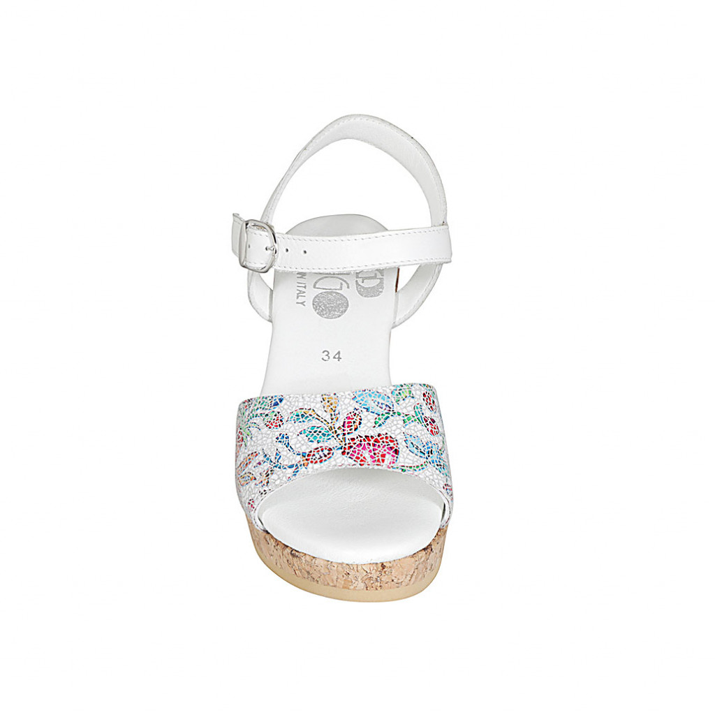 Sandalia para mujer en piel blanca imprimida multicolor mosaico con cinturon, plataforma y cuña 7 - Tallas disponibles:  42, 44