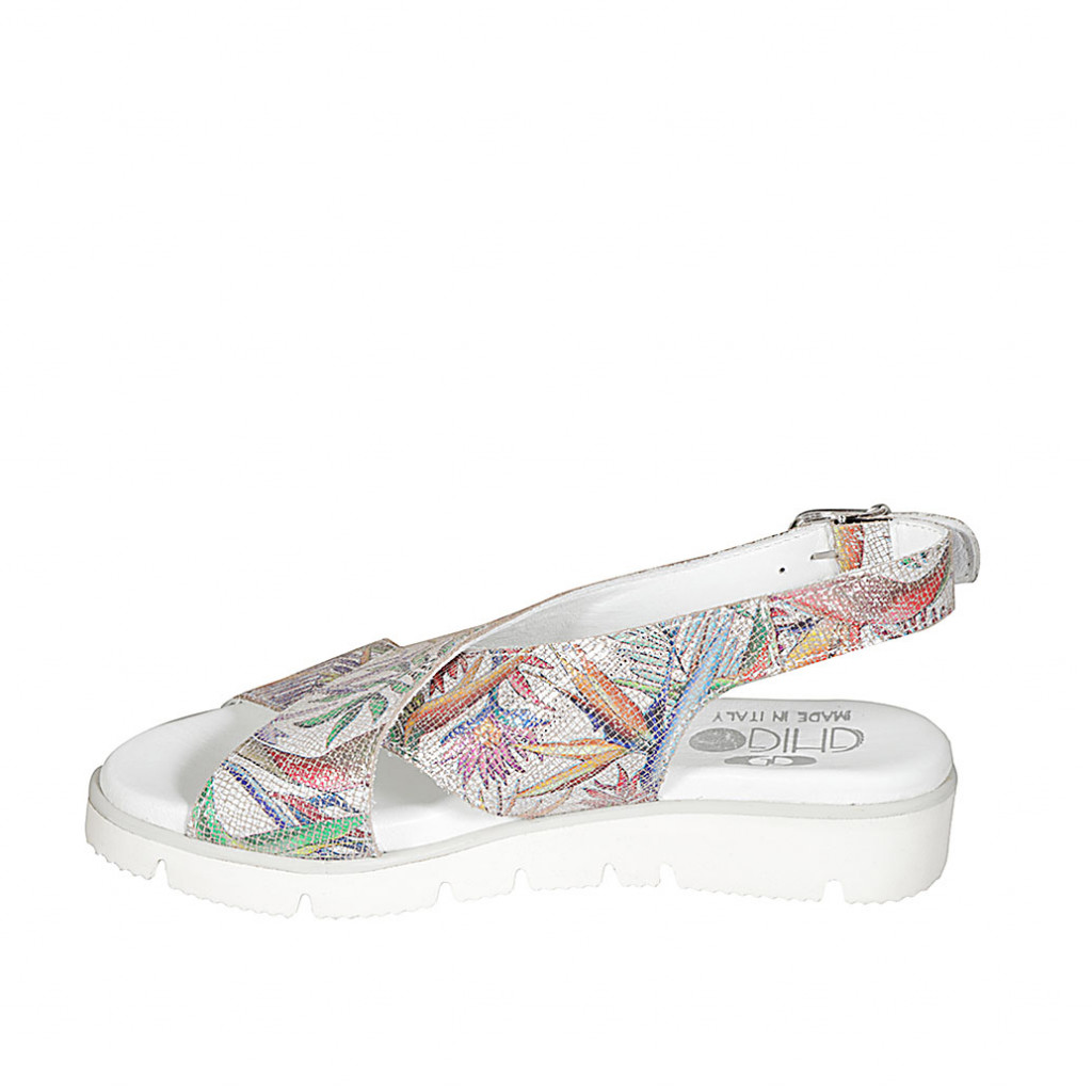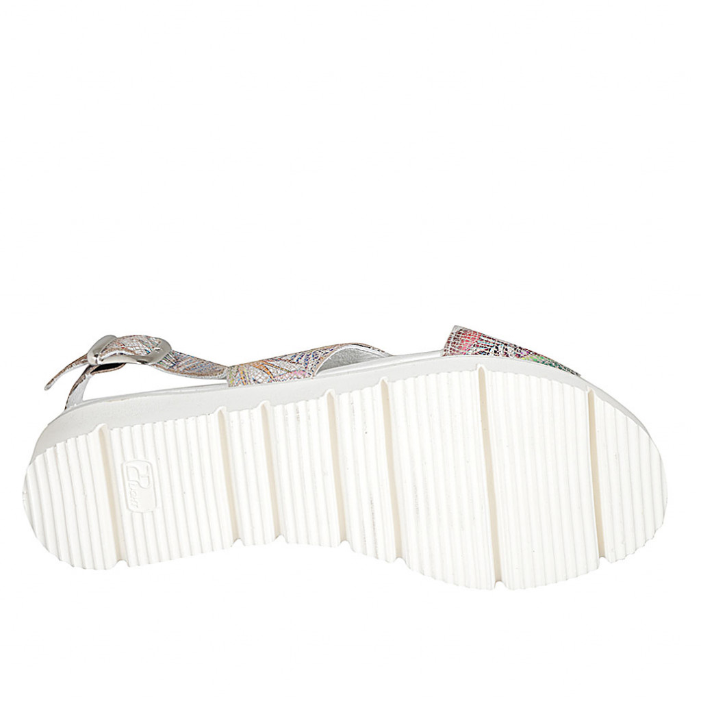 Sandalia para mujer en piel laminada plateada y estampada mosaico cuña 3 - Tallas disponibles:  42