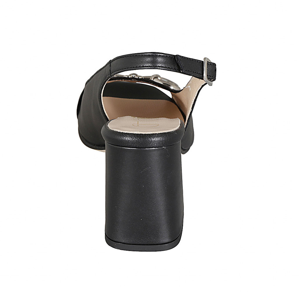 Sandalia para mujer con accessorio dorado en piel negra tacon 8 - Tallas disponibles:  32, 33, 34