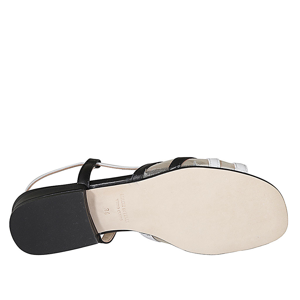 Sandalia para mujer en piel blanca y negra con tela transparente y elastico tacon 2 - Tallas disponibles:  32, 33, 42, 44
