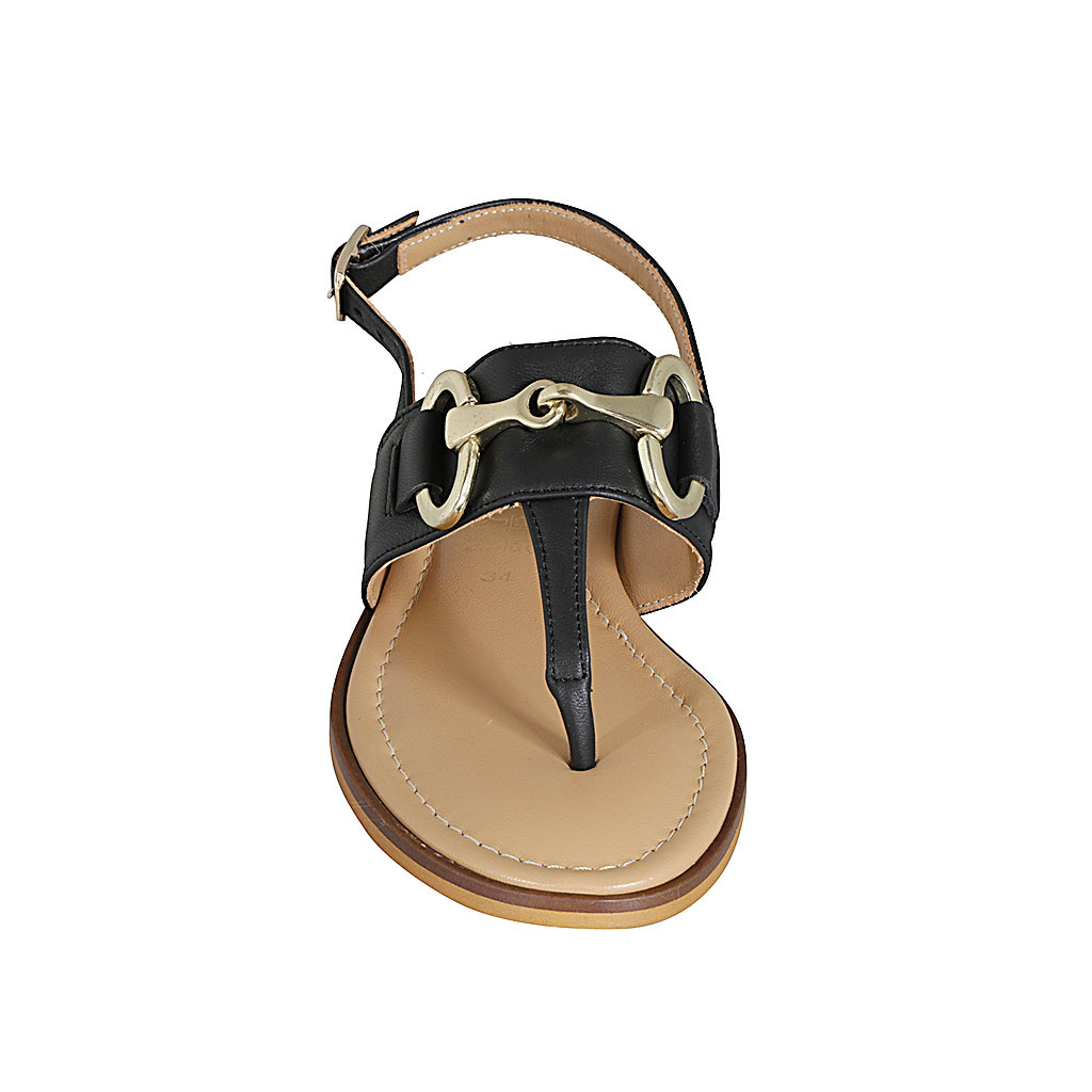 Sandalia de dedo para mujer con accesorio en piel negra tacon 2 - Tallas disponibles:  33