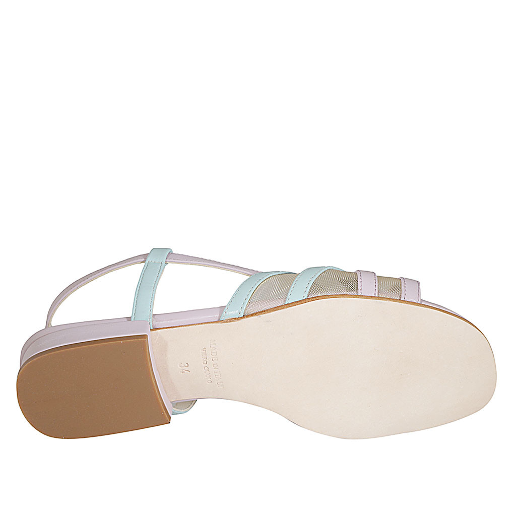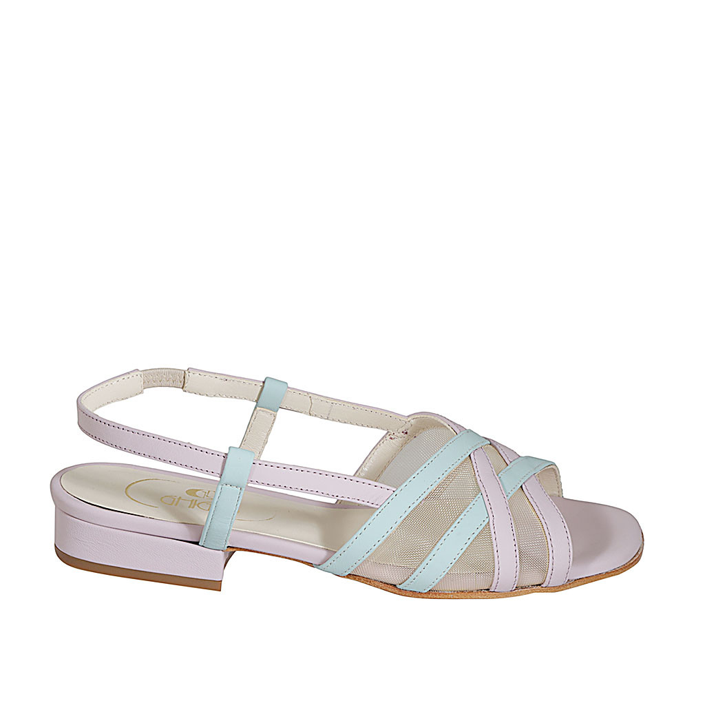 Sandalia para mujer en piel rosa y azul claro con tela transparente y elastico tacon 2 - Tallas disponibles:  32, 42, 43, 44