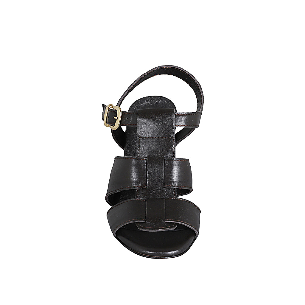 Sandalia con cinturon para mujer en piel marron oscuro tacon 7