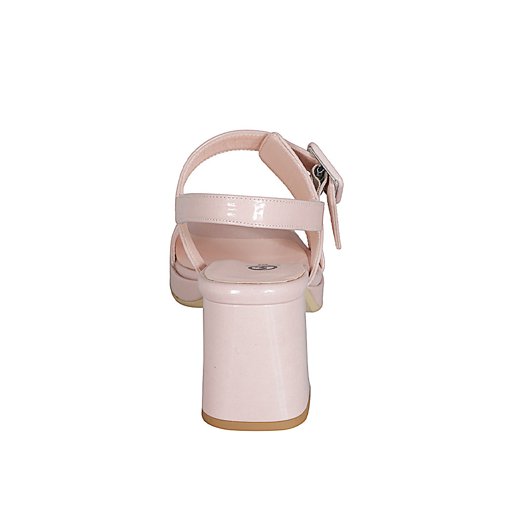 Zapato abierto para mujer con cinturon en charol negro tacon 7