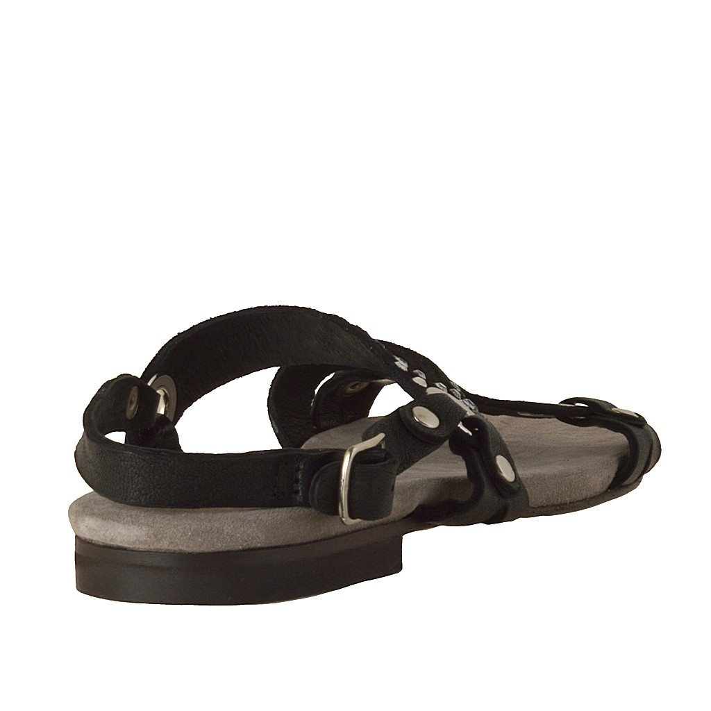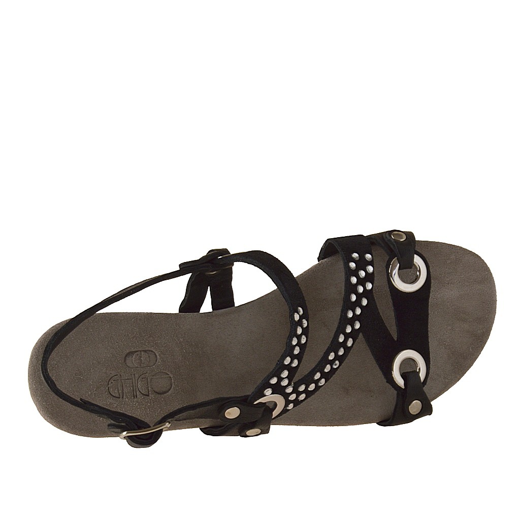 Sandalia con estrases en piel y gamuza de color negro tacon 1 - Tallas disponibles:  32