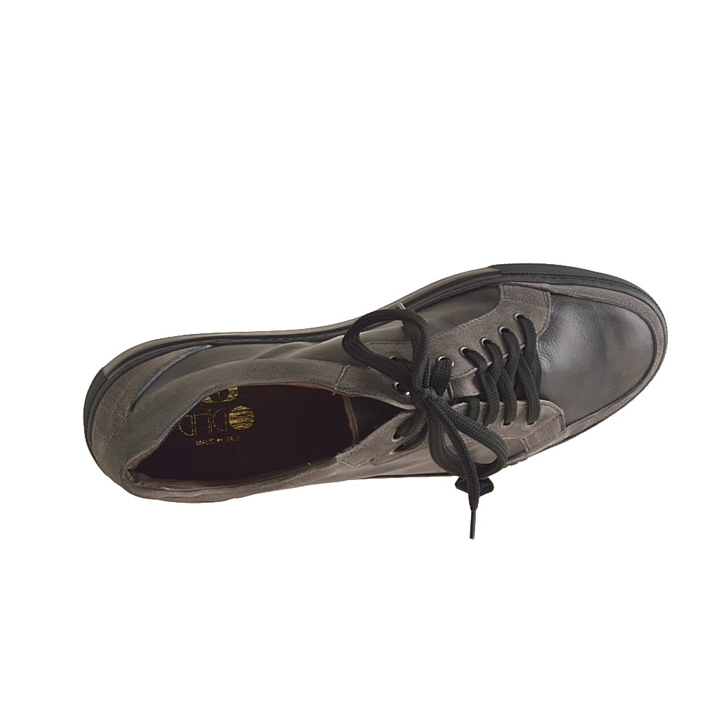Zapatos cerrado con cordones en piel y gamuza gris - Tallas disponibles:  47
