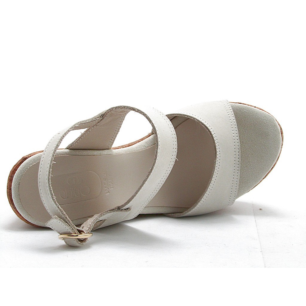 Sandalia para mujer con moño en gamuza beis y imprimida blanca cuña 6