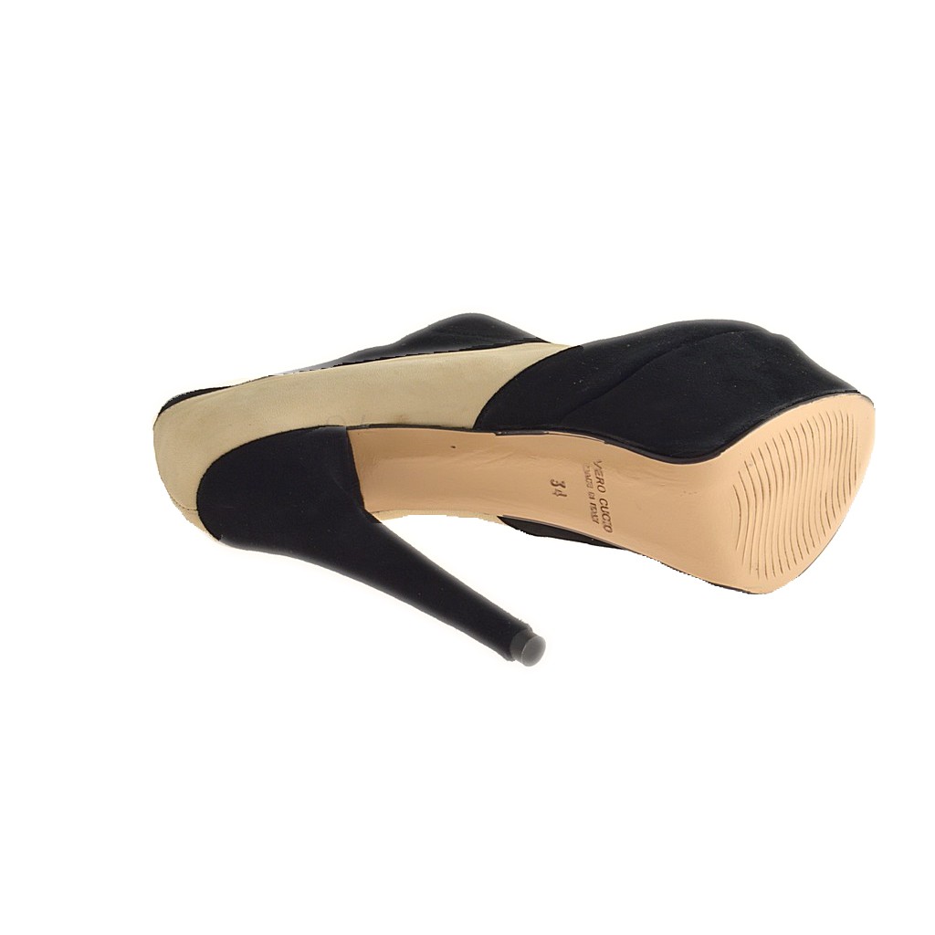 Zapato cerrado con plataforma en gamuza color negro y beis tacon 15