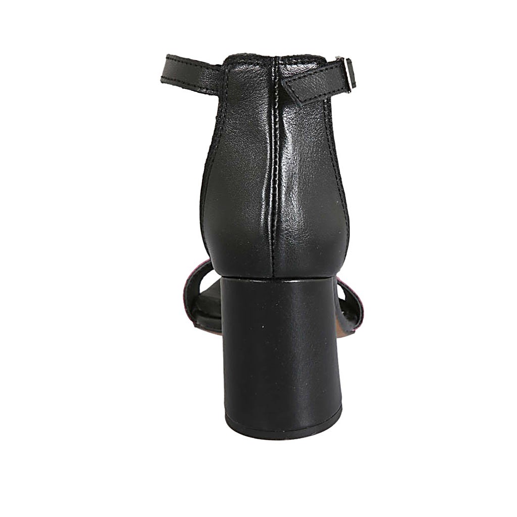 Zapato abierto para mujer con cinturon al tobillo en piel negra y gamuza imprimida rosa a rayas tacon 7 - Tallas disponibles:  42