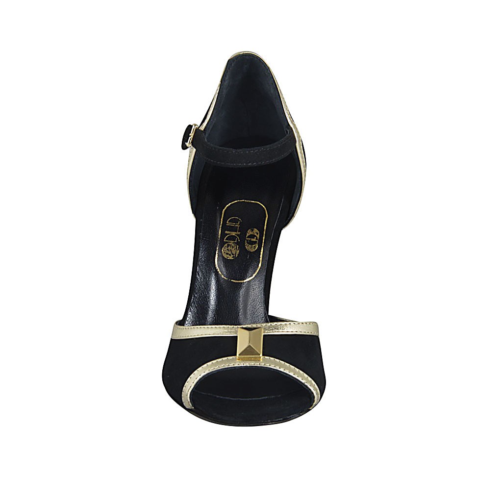 Botines perforados para mujer con hebilla y cremallera en piel anticada negra