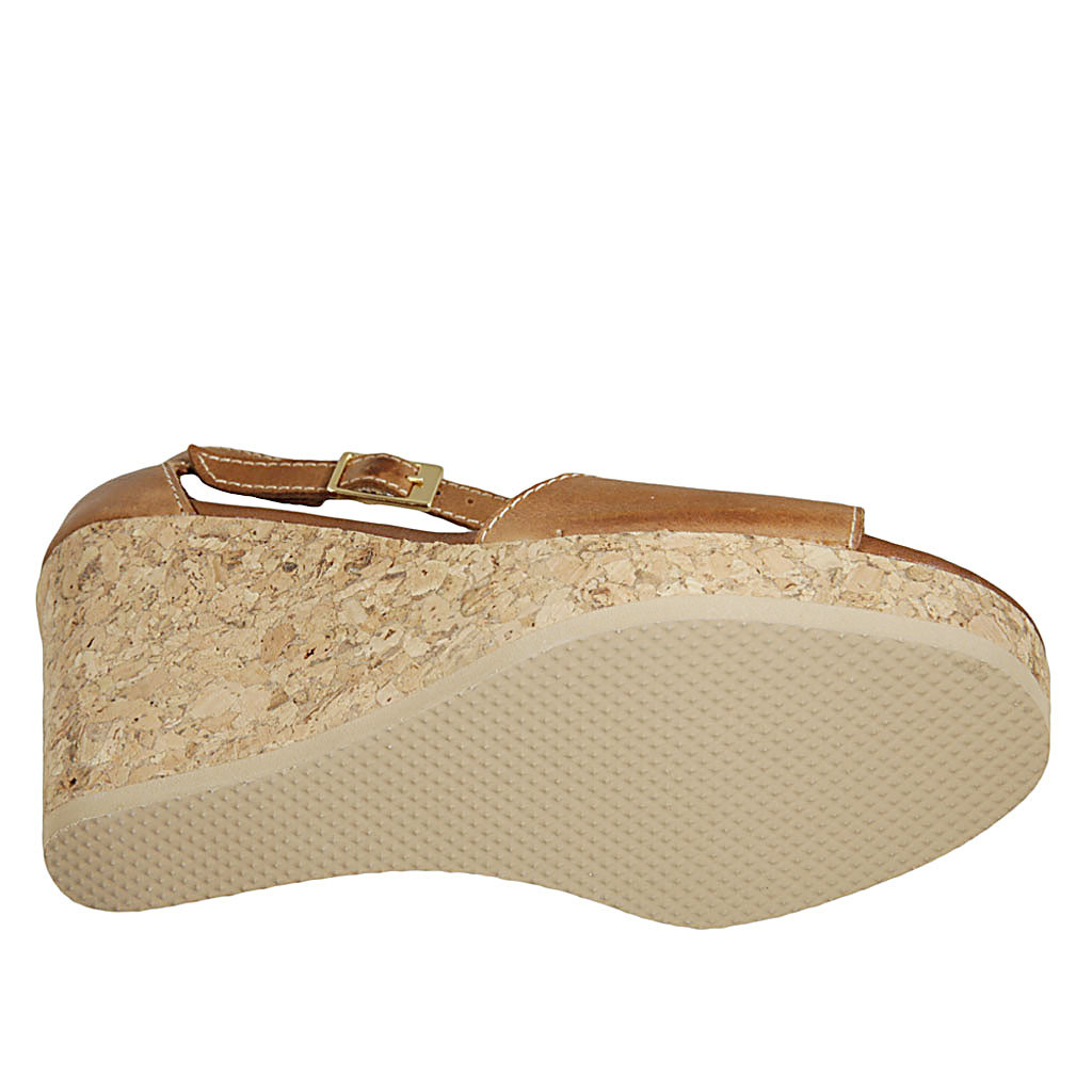 Zapato abierto para mujer con cinturon y plataforma en piel cognac cuña 9 - Tallas disponibles:  43