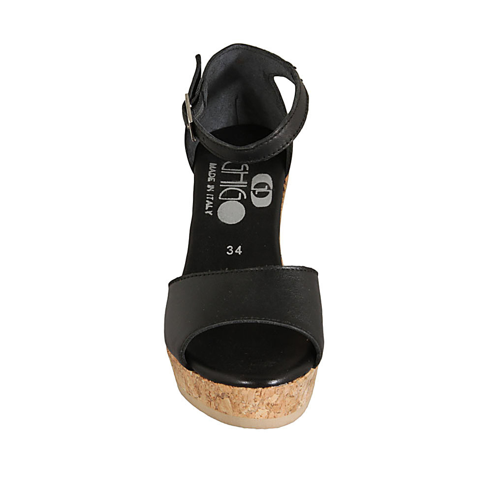 Zapato abierto para mujer con cinturon y plataforma en piel negra cuña 9 - Tallas disponibles:  42