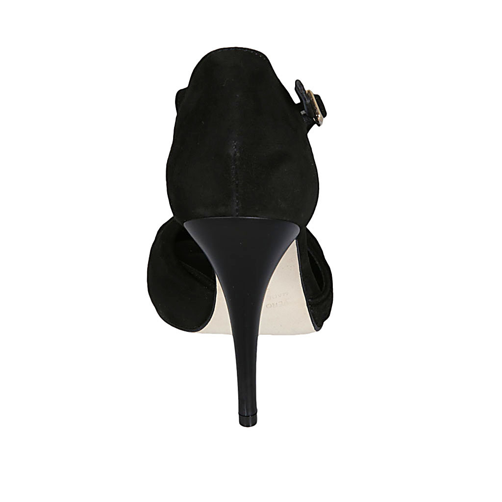 Zapato abierto para mujer con nudo y cinturon en gamuza negra tacon 11 - Tallas disponibles:  42