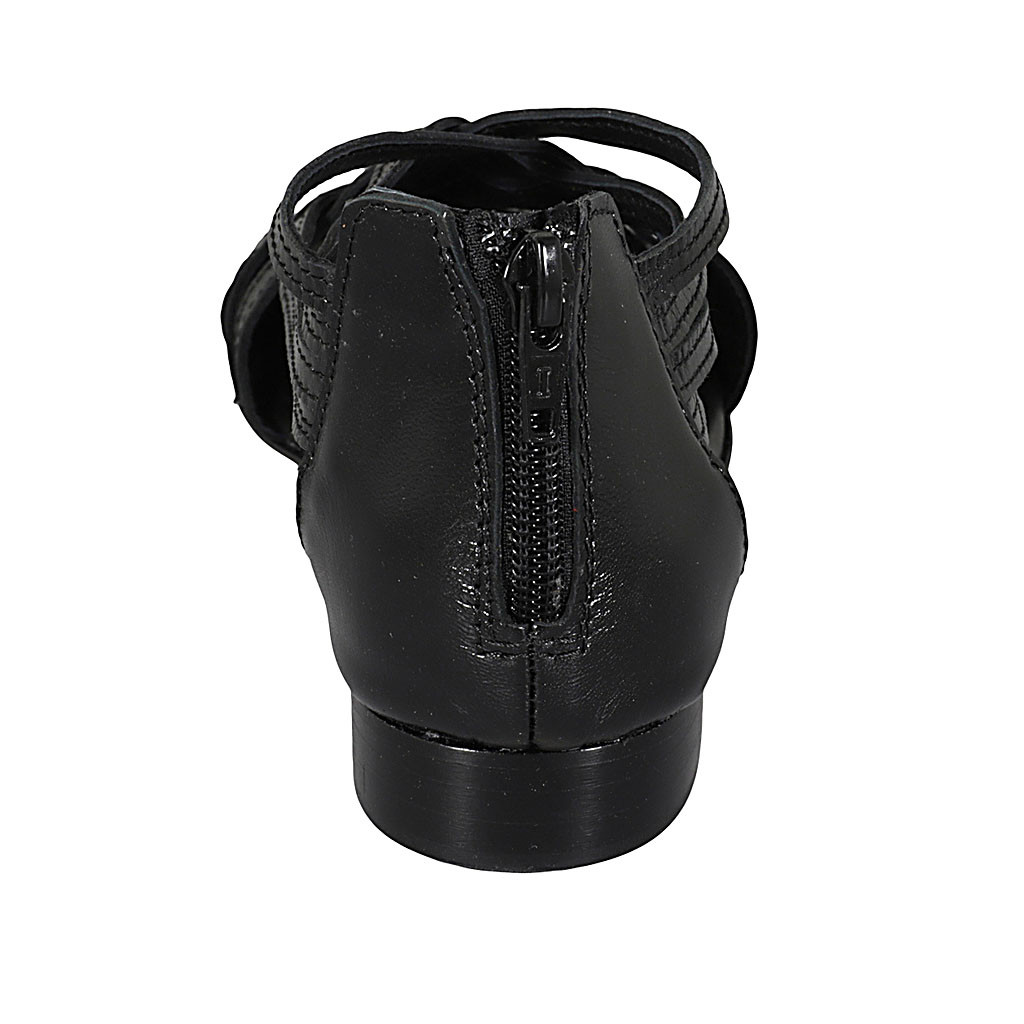Zapato abierto con cremallera en piel negra tacon 2 - Tallas disponibles:  33, 42
