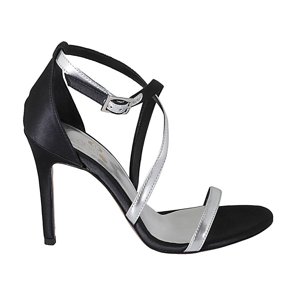 Zapato abierto para mujer en piel negra y blanca con cinturon cruzado tacon 2