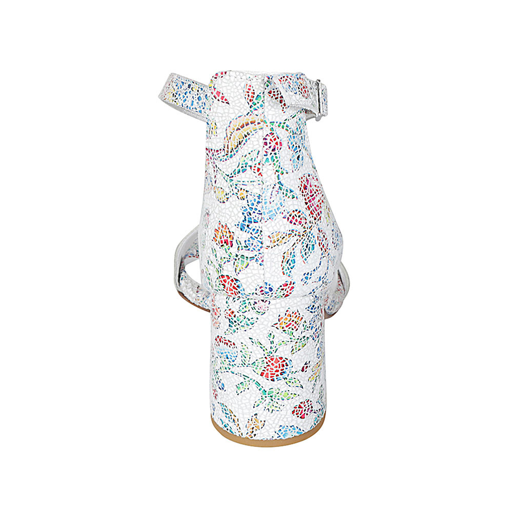 Zapato abierto para mujer con cinturon en piel blanca imprimida multicolor tacon 7 - Tallas disponibles:  32