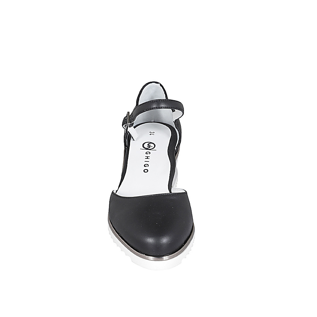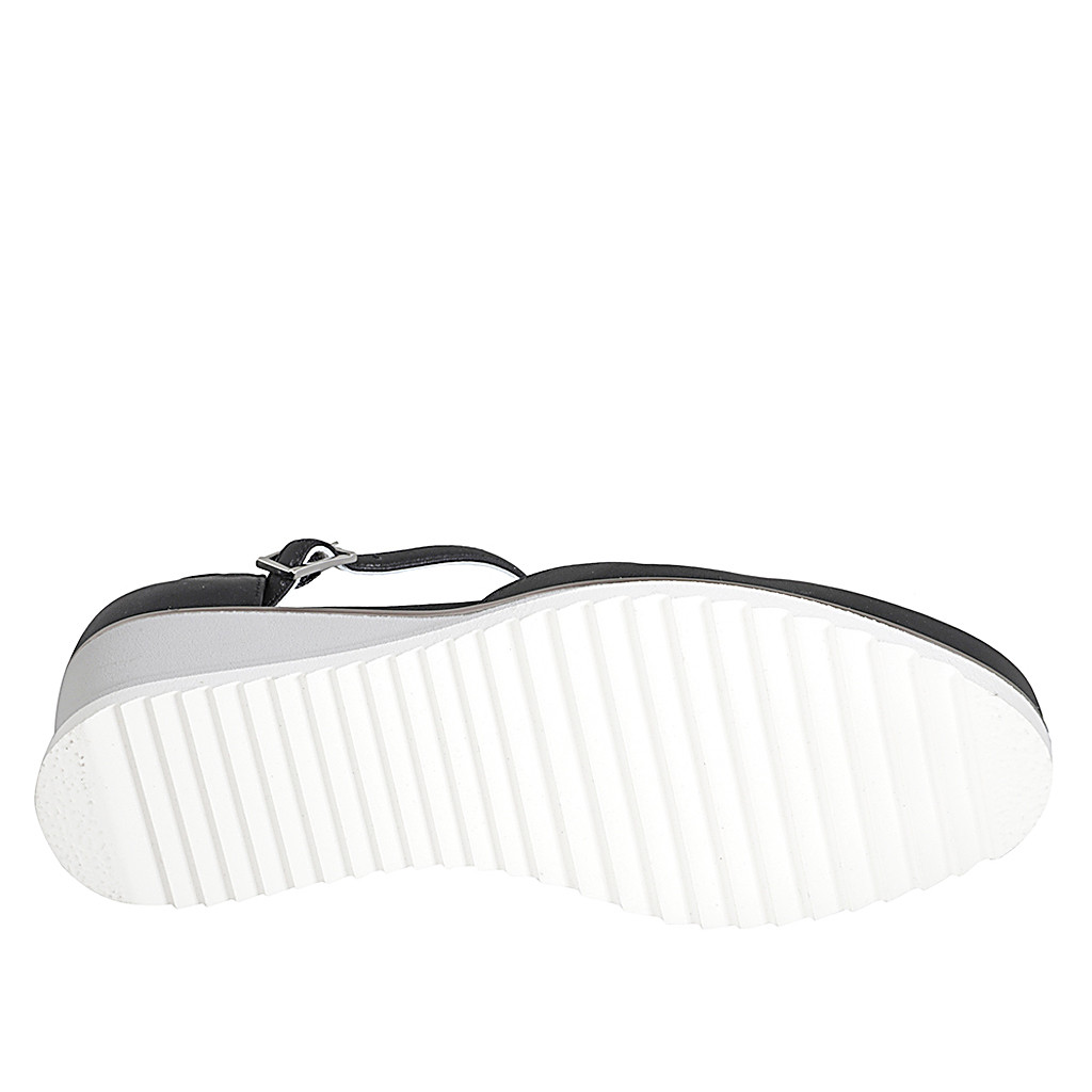 Zapato abierto para mujer con cinturon en piel negra cuña 5 - Tallas disponibles:  32, 35, 42, 44