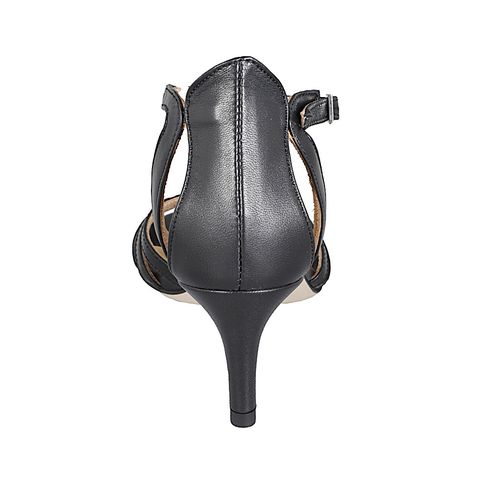 Zapato abierto para mujer con cinturon en piel negra tacon 5