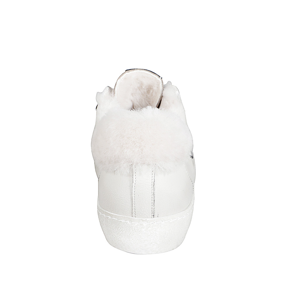 Sneaker con cordones para mujer con plantilla extraible en piel blanca y gamuza marron con forro en pelaje cuña 3