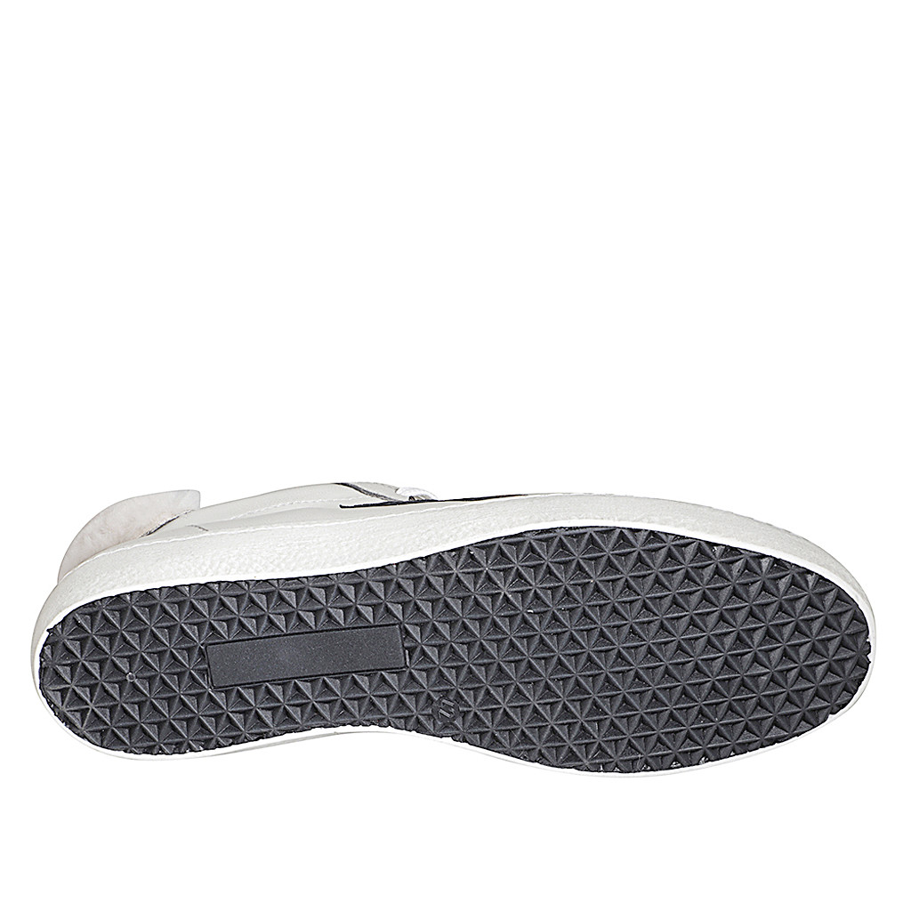Sneaker con cordones para mujer con plantilla extraible en piel blanca y gamuza marron con forro en pelaje cuña 3 - Tallas disponibles:  42, 43, 44, 45, 46