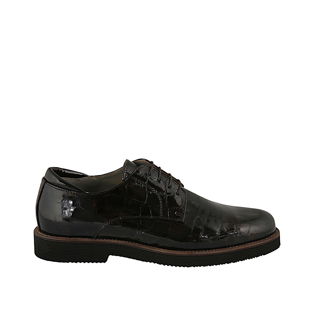 Zapato derby con cordones para mujer en charol imprimido bronce tacon 3 - Tallas disponibles:  44