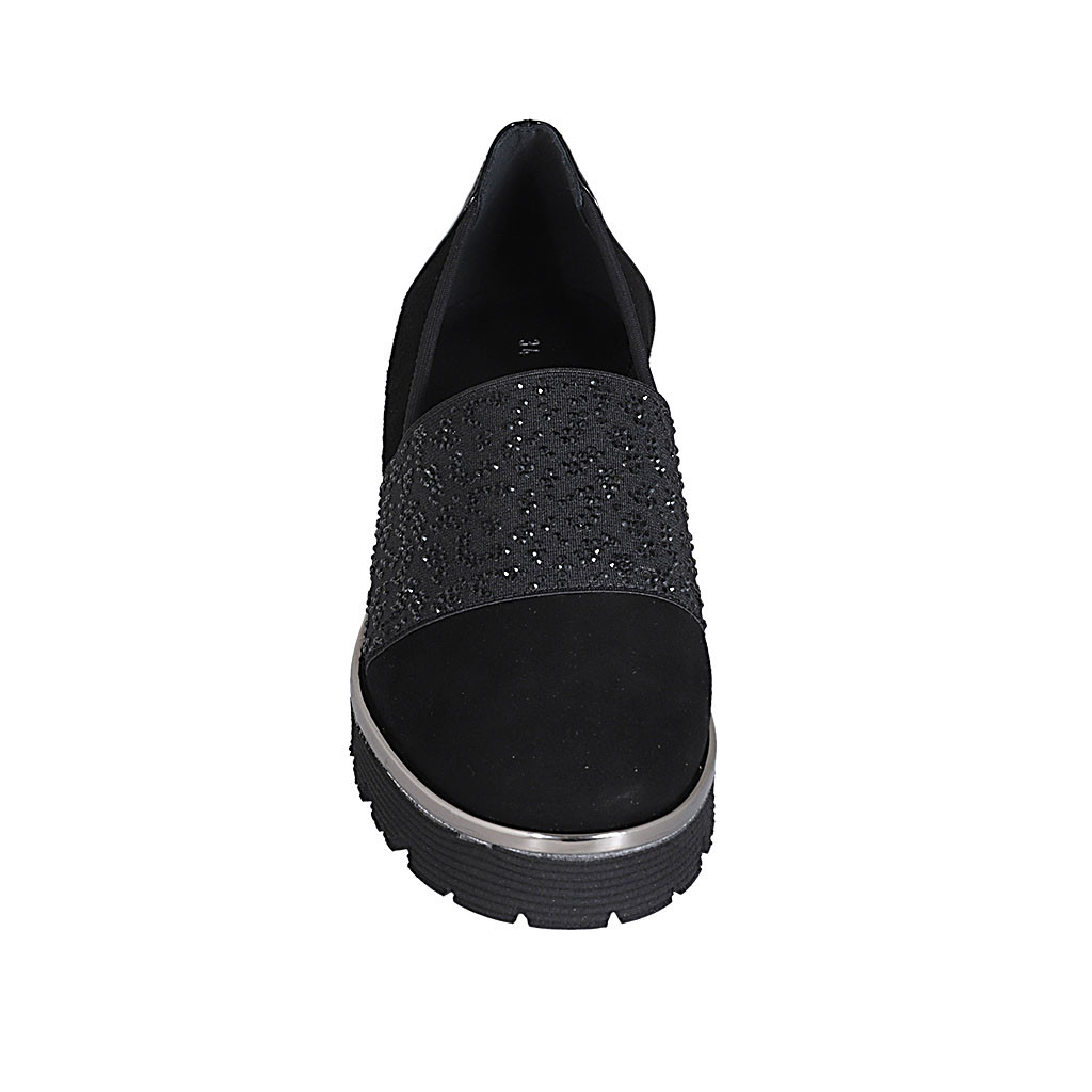 Zapato de salon para mujer en piel negra con cadena tacon 8