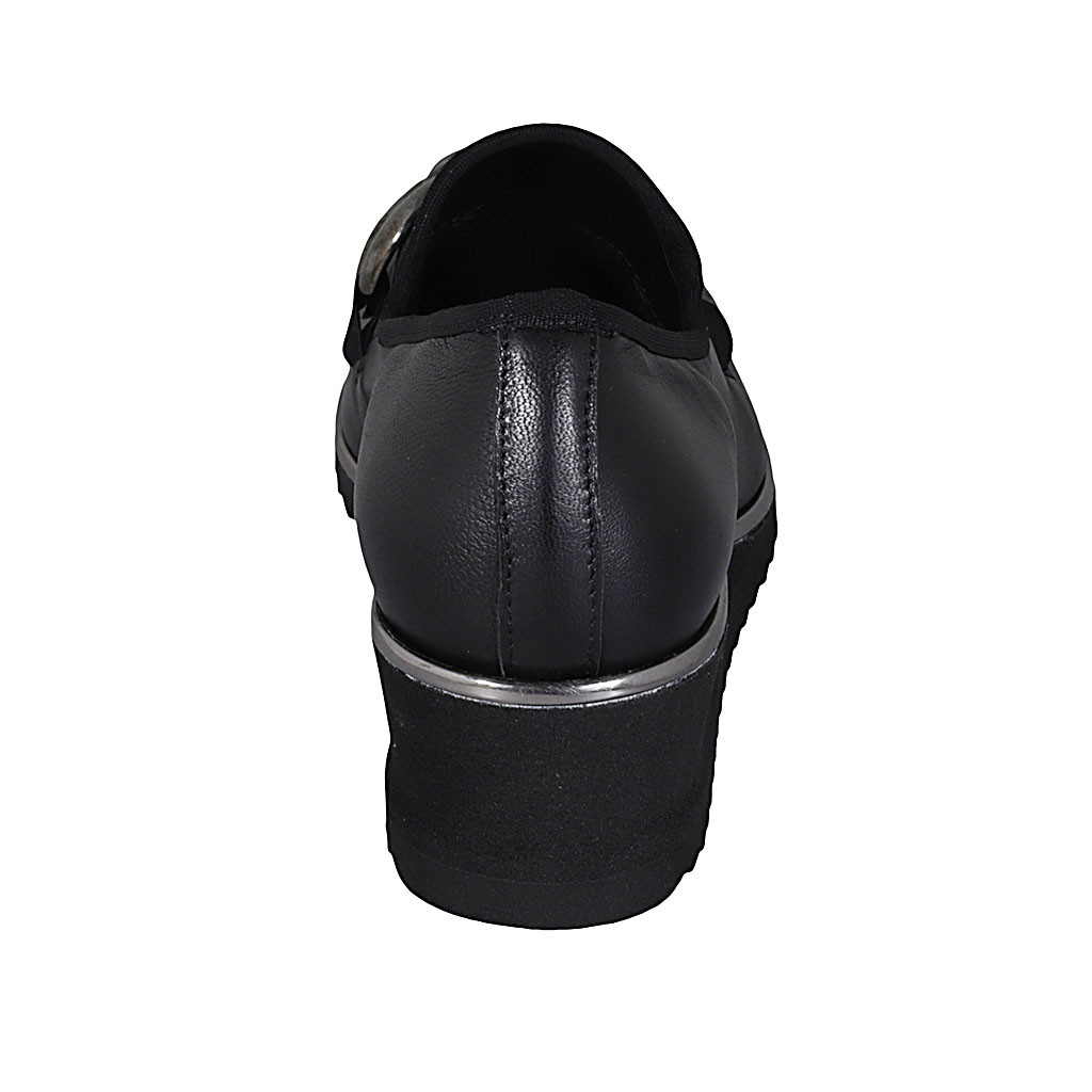 Zapato para mujer en piel negra con elastico y cadena cuña 4 - Tallas disponibles:  44