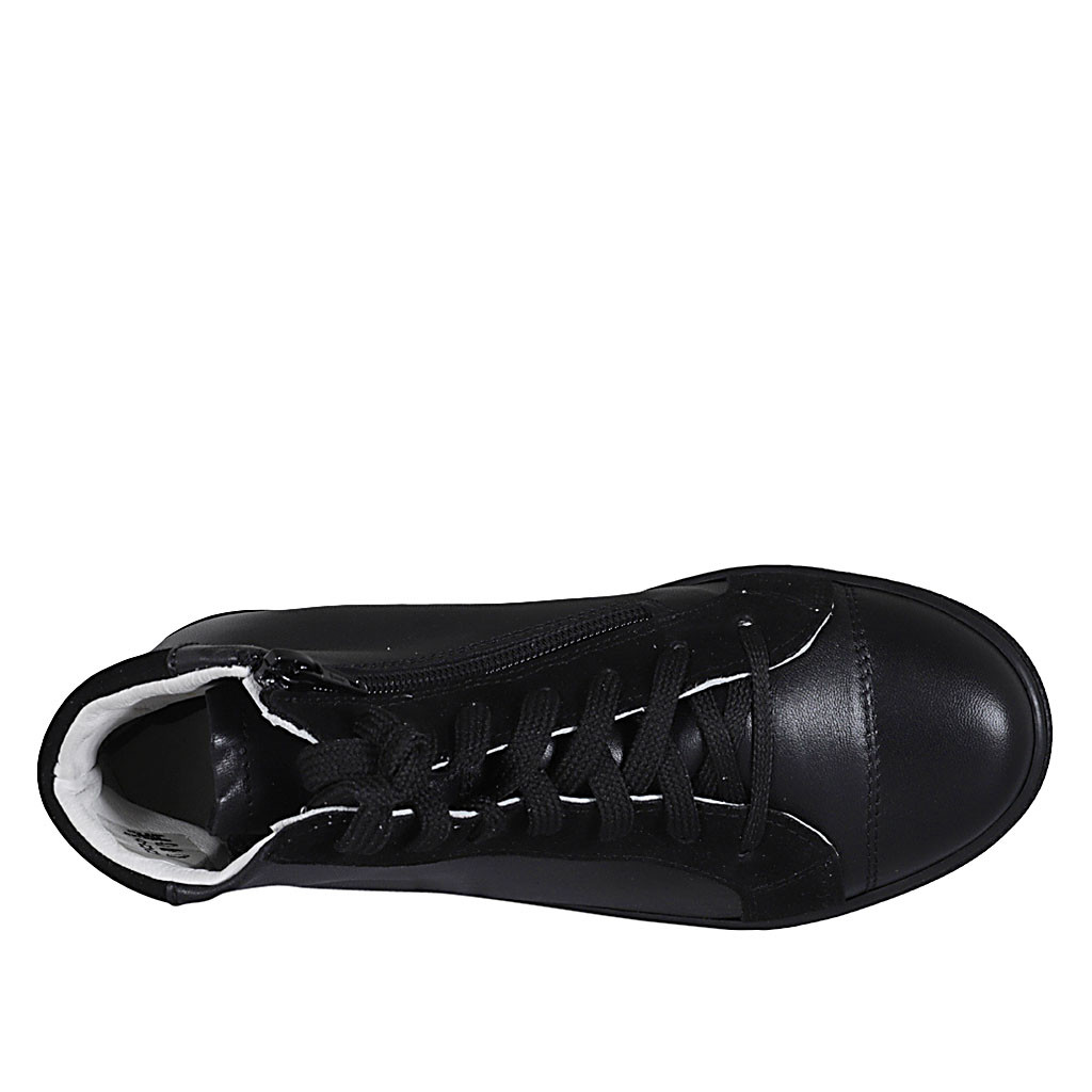 Zapato con cordones para mujer en piel y gamuza negra cuña 3 - Tallas disponibles:  32, 33, 44