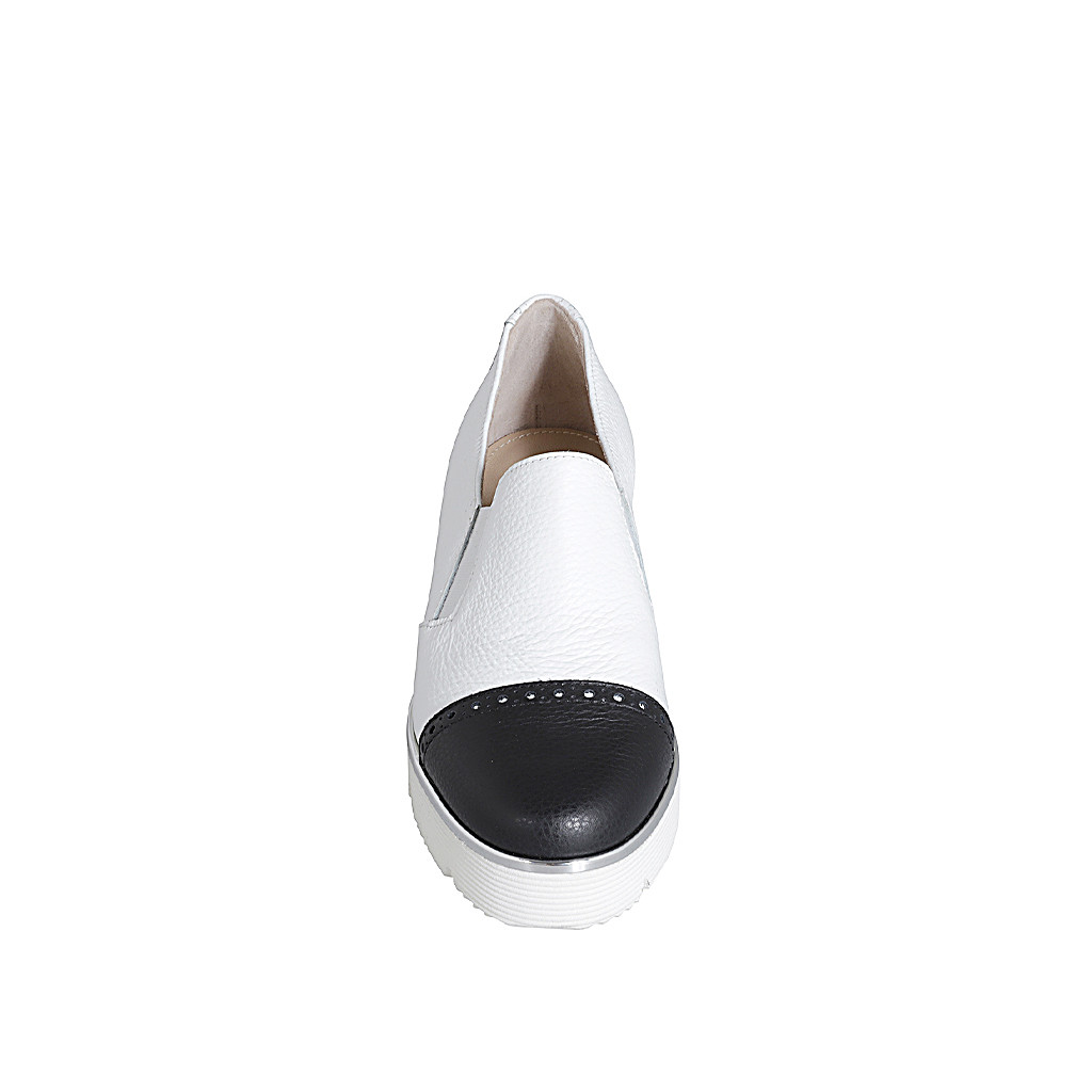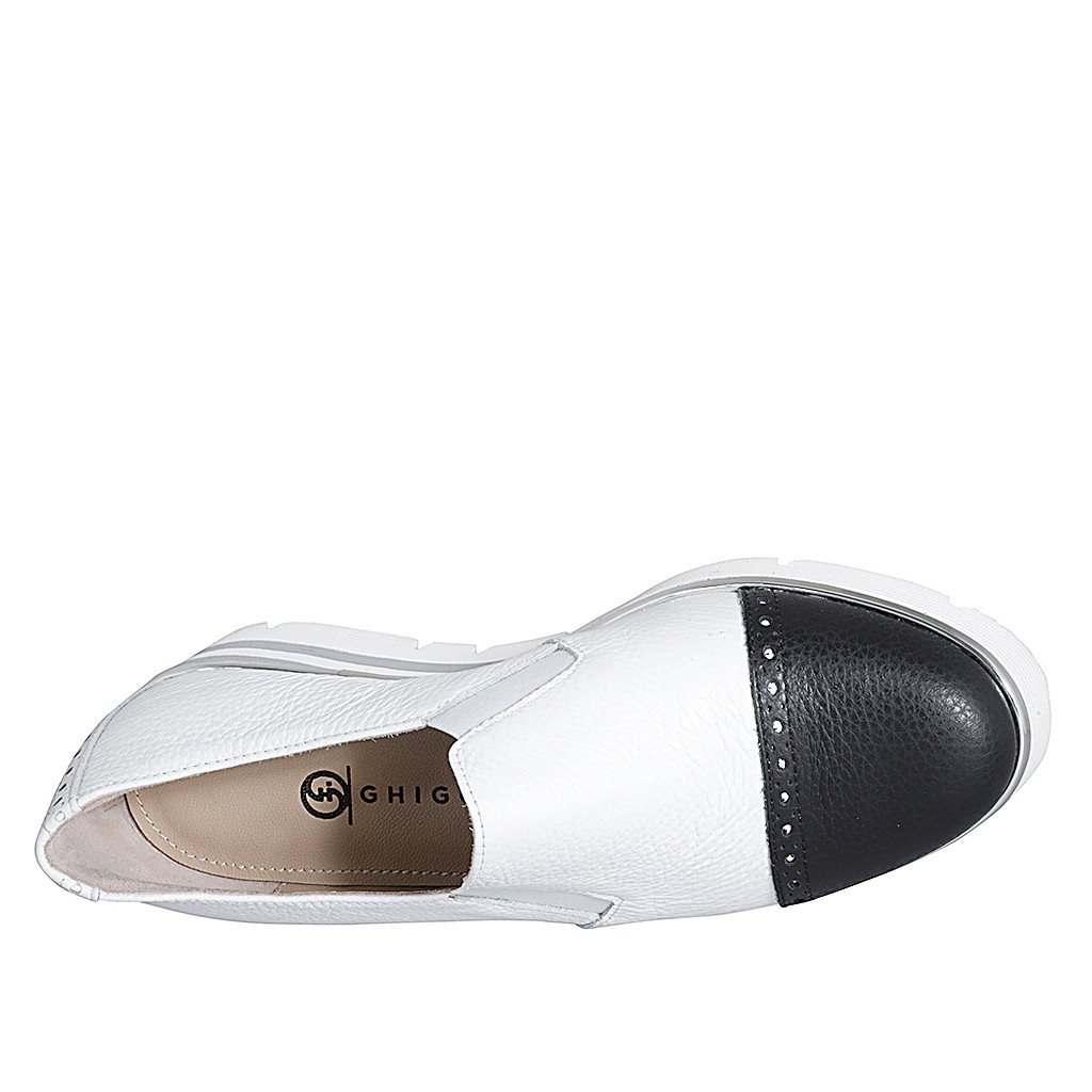 Zapato para mujer en piel blanca y negra con elastico y puntera cuña 4 - Tallas disponibles:  42, 46
